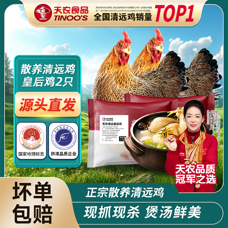 【天农】正宗清远鸡皇后鸡走地鸡1kg/只*2
