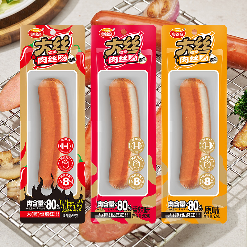 中食空间  > 大健康、功能食品  > 【92g装】10袋 奥锦奇Q弹、鲜嫩、酥香 脆皮大丝肉丝肠